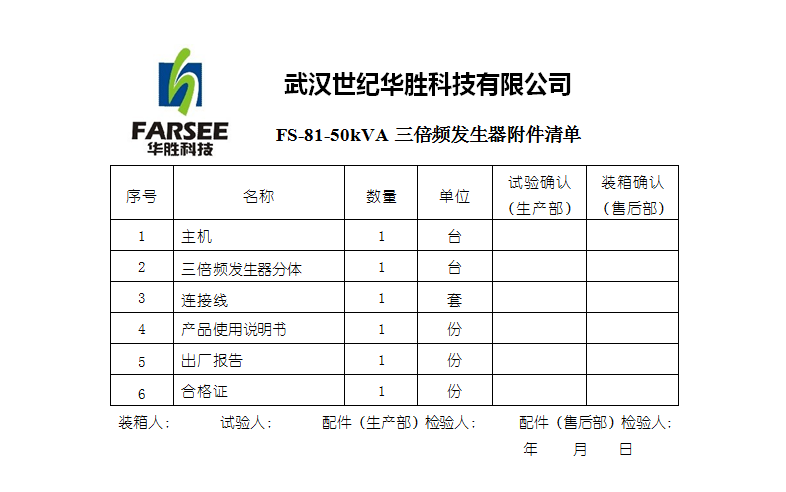 ◆ FS系列三倍頻電源發(fā)生器技術參數