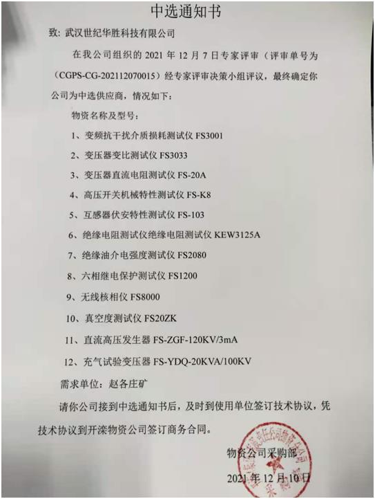 熱烈祝賀我司在開(kāi)灤趙各莊礦業(yè)有限公司采購(gòu)部電力試驗(yàn)檢測(cè)儀器一批采購(gòu)項(xiàng)目中圓滿交貨